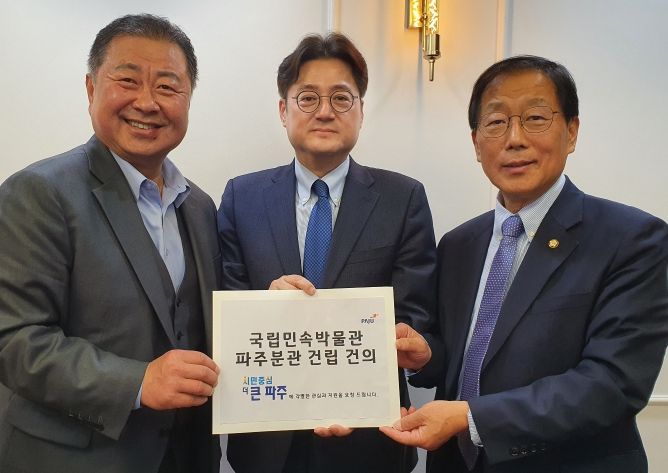 파주시는 27일 김경일 파주시장이 국립민속박물관 파주분관 유치를 위해 국회에서 홍익표 문화체육관광위원회 위원장과 윤후덕 지역 국회의원을 만나 현재 국립민속박물관 파주 유휴부지를 확장하여 파주분관으로 건립되도록 내년 예산에 반영해 줄 것을 요청했다고 밝혔다.