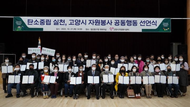 [한국기자연대] 고양시자원봉사센터(이사장 이동환)은 지난 27일 일산동구청 대회의실에서 '탄소중립 실천, 고양시 자원봉사 공동행동 선언식'을 개최했다.