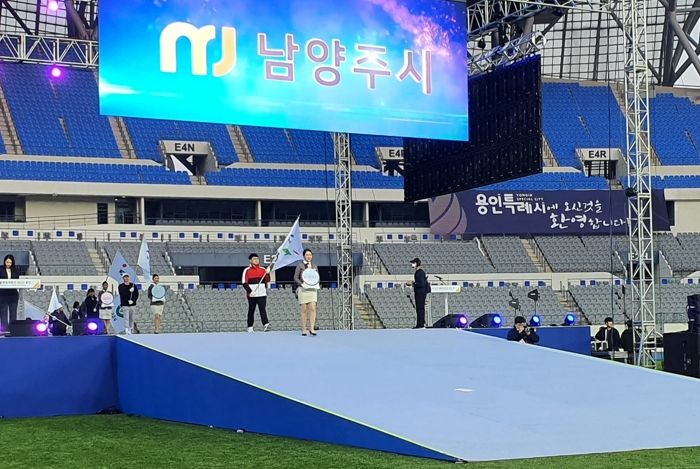 [한국기자연대] 이석범 남양주시 부시장은 지난 28일 용인미르스타디움에서 열린 ‘제33회 경기도생활체육대축전 2022 용인’ 개회식에 참석해 남양주시 대표로 대회에 참가한 선수들을 응원했다.