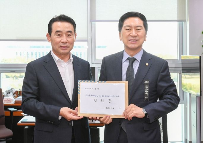 [한국기자연대] 백영현 포천시장은 31일 최춘식 국회의원, 경기도의회 윤충식·김성남 의원과 함께 김기현(국회의원, 울산 남구을) 국방위원회 위원을 만나 건의문을 전달했다.