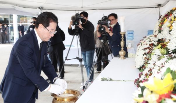 [한국기자연대] 전라남도가 ‘이태원 사고’로 소중한 목숨을 잃은 사망자를 추모하기 위해 ‘이태원 사고 사망자 합동분향소’를 31일 도청 만남의 광장(도 본청과 도의회 사이)에 마련해 운영한다.
