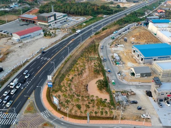 농공단지 사거리의 숲은 연안여객선터미널 숲과 달리 공원 형태로 조성됐으며, 미세먼지 저감 효과를 극대화할 수 있도록 대형 나무 위주로 식재를 했다.