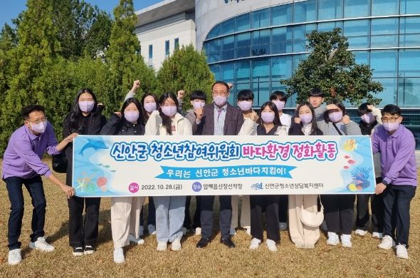 [한국기자연대] 신안군청소년참여위원회 청소년위원들이 지난 10월 28일(금) 압해읍 신장선착장에서 바다환경 정화활동을 실시했다.