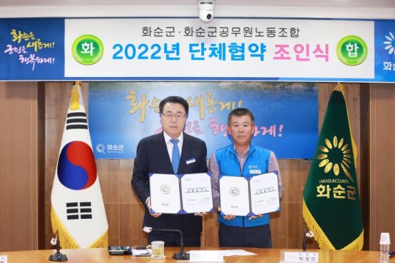 이날 단체협약은 지난 9월 26일 화순군공무원노동조합이 요구한 단체교섭안에 대해 화순군과 노조가 합의해 성사됐다.