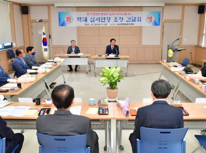 [한국기자연대] 장성군 삼서면의 발전을 이끌어 온 역대 삼서면장들이 한자리에 모였다. 삼서면은 지난 26일, 역대 삼서면장을 초청해 간담회를 열었다.