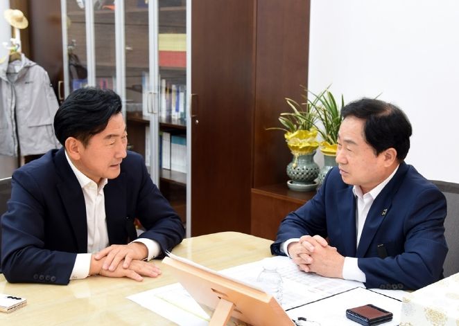 [한국기자연대] 김동근 의정부시장은 11월 1일 오후 남양주시를 방문, 주광덕 남양주시장을 만나 지하철 8호선의 의정부 연장사업 추진을 위한 적극적인 상호 협력을 요청했다.