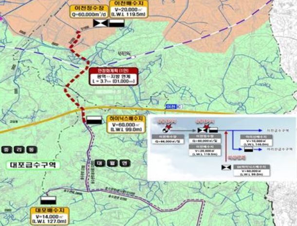 이와 함께, 시는 2023년부터 현재 운영 중인 장호원배수지가 장래 체류시간이 부족한 상황 해결을 위해 설성배수지 신설을 추진해 장호원, 설성, 율면 등 남부권 주민들에게 안정적인 용수 공급로를 확보할 예정이다.(※신설되는 설성배수지는 대포배수지 송수관로를 이용, V=2,000㎥)