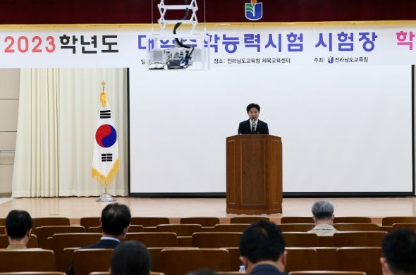 [한국기자연대] 전라남도교육청이 2023학년도 대학수학능력시험(11월 17일)의 안전한 시행을 위해 11월 2일(수) 도교육청 체육교육센터에서 53개 시험장학교 교장 회의를 개최했다.