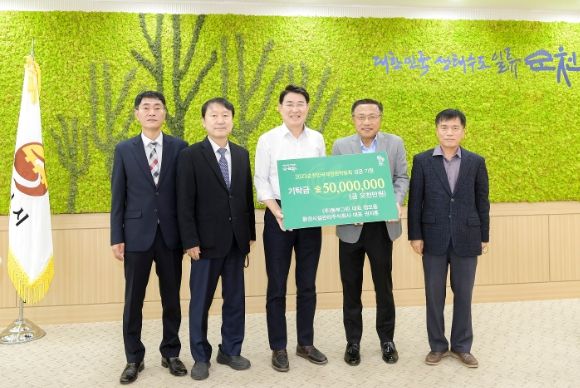 [한국기자연대] (재)순천만국제정원박람회 조직위원회는 3일 순천시청 시장실에서 호남산업주식회사 3천만 원, 환경시설관리 주식회사 및 ㈜동부그린이 5천만 원의 기부금 전달식을 가졌다고 밝혔다.