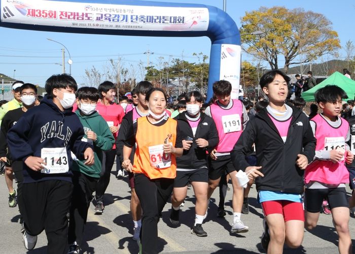 [한국기자연대] 전라남도교육청이 11월 5일 ‘제93주년 학생독립운동 기념 제35회 교육감기 단축마라톤대회’를 초·중·고·특수학생 및 교육가족 993명이 참가한 가운데 문림의향의 고장 장흥에서 개최했다.