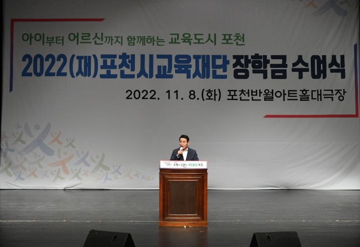 [한국기자연대] (재)포천시교육재단은 지난 8일 반월아트홀 대극장에서 장학생 및 학부모 등 500여 명이 참석한 가운데 ‘2022년 하반기 장학금 수여식’을 개최했다.