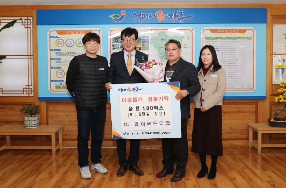 ㈜와이푸드테크는 2016년 장평면에 본점 이전했으며 2019년부터 장흥군에 음료 등을 꾸준히 기탁해오고 있다.