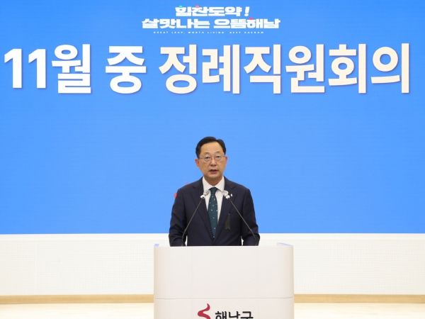 [한국기자연대] 명현관 해남군수는 14일 정례회의를 통해“주말동안 열린 해남미남축제를 안전사고 없이 무사히 마무리하게 되어 군민들과 관광객 여러분께 감사드린다”며“사전에 철저한 안전점검과 전 직원이 주말도 반납하고 축제장에서 종사하면서 안전하고 편안한 축제로 진행될 수 있게 됐다”고 전했다.