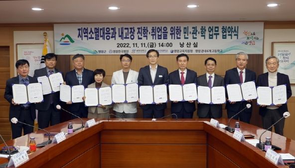 [한국기자연대] 영암군은 지난 11일 군청 낭산실에서 지방소멸대응과 내고장 진학 취업을 위한 민·관·학 업무 협약식을 개최했다고 밝혔다.