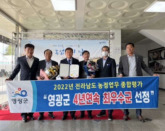 [한국기자연대] 영광군은 농업의 고부가가치 창출로 농업인의 소득증대와 삶의 질 향상을 위해 차별화된 시책추진을 인정받아 2022년 전라남도 농정업무 종합평가에서 4년 연속 최우수군에 선정됐다.