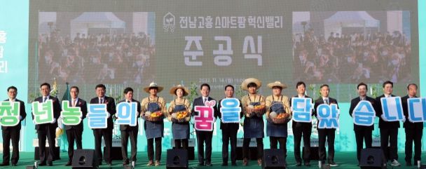 [한국기자연대] 전라남도는 14일 스마트농업 경영과 기술혁신 플랫폼 역할을 할 ‘전남 고흥 스마트팜 혁신밸리’준공식을 개최했다.