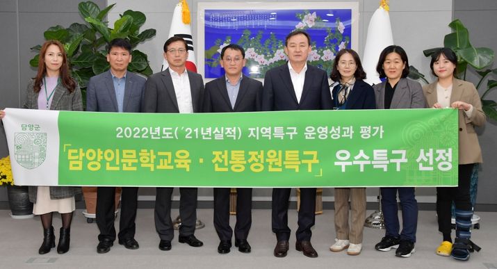 [한국기자연대] 담양군은 9일 담양 인문학교육•전통정원 특구가 전국 196개 특구 대상으로 실시한 2022년도(‘21년 실적) 지역특구 운영성과 평가에서 우수특구에 3년 연속 선정됐다고 14일 밝혔다.