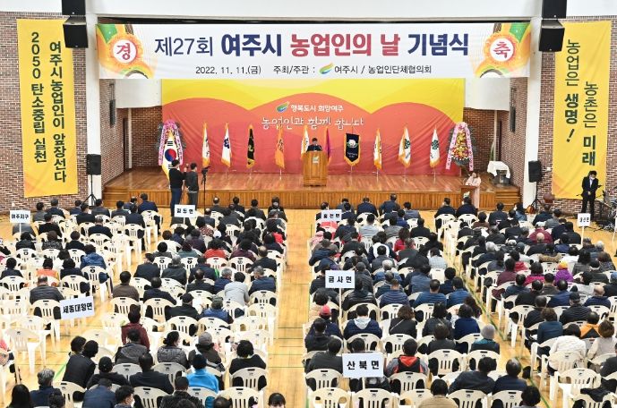 '농업인의 날' 기념식은 매년 11월 11일을 전후하여 개최하며 농업인단체 조직의 활성화 및 회원 역량강화와 지역 농업 발전을 견인하고, '탄소중립 실천운동 결의'를 통해 여주시 농업이 앞장서서 실천하자는 굳은 의지를 보여주었다.