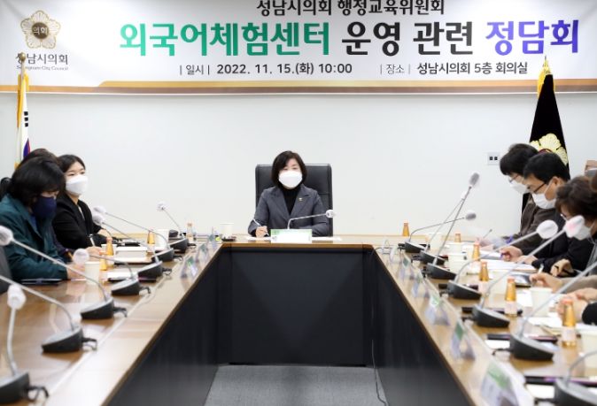 [한국기자연대] 성남시의회 행정교육위원회(위원장 박경희)에서는 15일 시의회 5층 회의실에서 ‘외국어체험센터 운영 관련 정담회’를 개최했다.