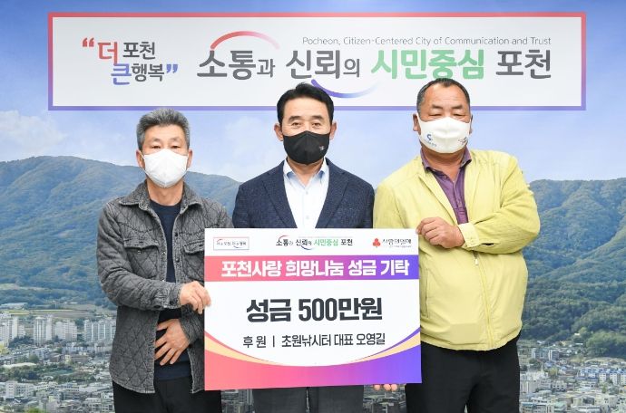 [한국기자연대] 포천시는 11일 초원낚시터 오영길 대표가 경기사회복지공동모금회를 통해 이웃돕기 성금 500만 원을 기탁했다고 밝혔다.