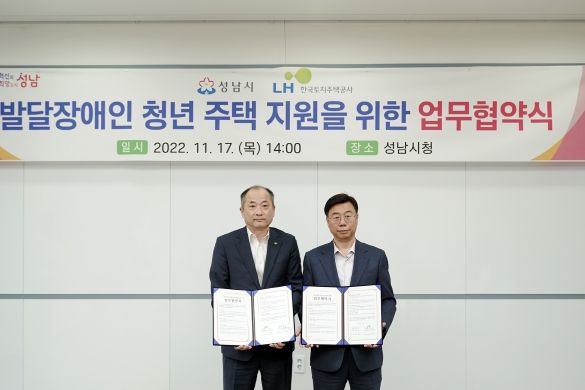 [한국기자연대] 성남시와 한국토지주택공사(LH)가 무주택 청년 발달장애인의 주거안정을 위해 손을 잡았다.