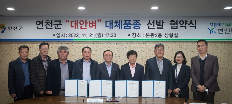 [한국기자연대] 연천군은 지난 21일 군청 상황실에서 대안벼 보급종 공급 중단에 따른 대안벼 대체품종 선발 협약을 맺었다고 22일 밝혔다.