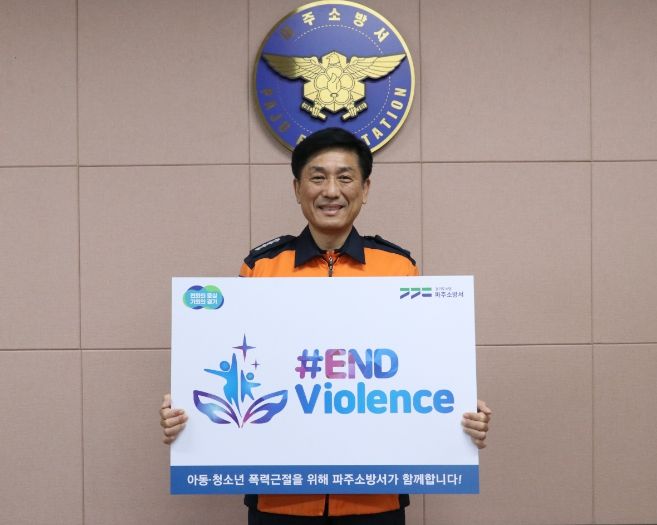 [한국기자연대] 파주소방서는 지난 19일 아동 폭력 근절 캠페인 ‘엔드 바이올런스’(END Violence)에 참여해 아동폭력 근절 의지를 다졌다.