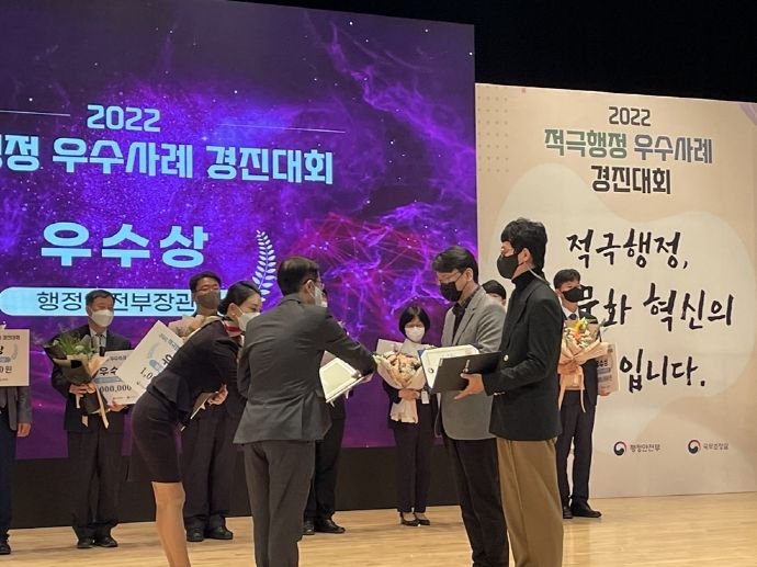 [한국기자연대] 의정부시는 11월 24일 정부세종청사 6동 대강당에서 개최된 인사혁신처, 행정안전부, 국무조정실이 공동으로 주관하는 ‘2022 적극행정 우수 사례 경진 대회’에서 LH(한국토지주택공사)와 공동으로 우수상(행정안전부장관상)을 수상했다.