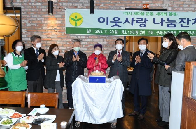 [한국기자연대] 구리시 (사)새마을회(회장 안정섭)는 지난 28일 아리랑갈비에서 새마을부녀회(회장 김광순) 주관으로 각 동 회원 30여명이 모인 가운데‘이웃사랑 나눔잔치’ 행사를 진행했다.