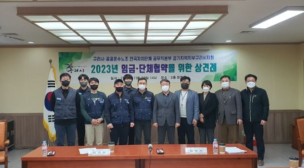 [한국기자연대] 구리시는 지난 30일 민주노총 전국공공운수노동조합 전국자치단체공무직본부 경기지역지부 구리시지회(지회장 김중호)와 2023년 임금 및 단체협약 체결을 위한 노·사 교섭위원 상견례를 가졌다.
