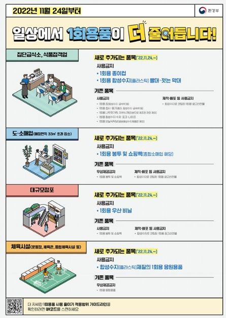 종이컵, 플라스틱으로 만들어진 빨대와 젓는 막대가 규제대상 품목에 새로 추가되어 식품접객업 및 집단급식소 매장 내 사용이 금지된다.