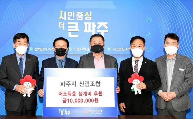 김경일 파주시장은 “지역 복지 발전을 위해 매년 앞장서서 기부를 해주시는 파주시산림조합에 감사드리며, 후원금은 지역 내 저소득층을 위해 소중하게 사용될 수 있도록 하겠다”고 전했다.