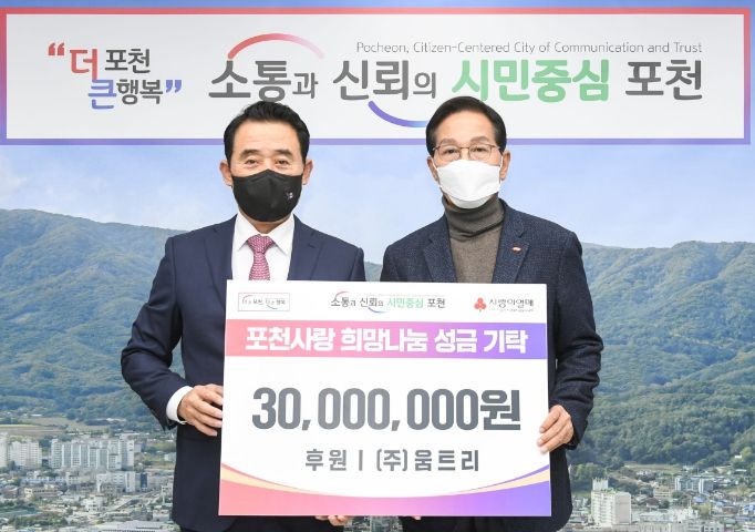 한편, ㈜움트리는 올해 1월 1,000만 원의 이웃돕기 성금을, 2월에는 포천시교육재단에 2,000만 원의 장학금을 쾌척하는 등 지역사회 공헌 활동을 추진한 바 있다.