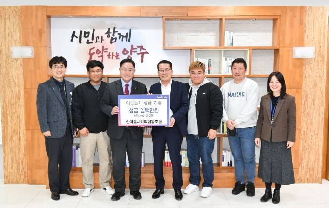 이날 전달식에는 강수현 양주시장, 한마음사회적협동조합 조합장 김승범 외 직원 3명이 참석했으며, 이번 성금은 양주시 저소득 계층에 전달될 예정이다.