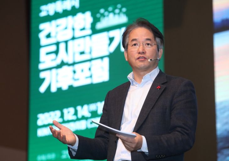 이동환 고양특례시장은 14일 진행된 기후포럼에서 고양특례시 정책설명에 나서 지방정부와 시민들의 참여를 강조하면서, 친환경 자족도시 조성에 대한 메시지를 전했다.