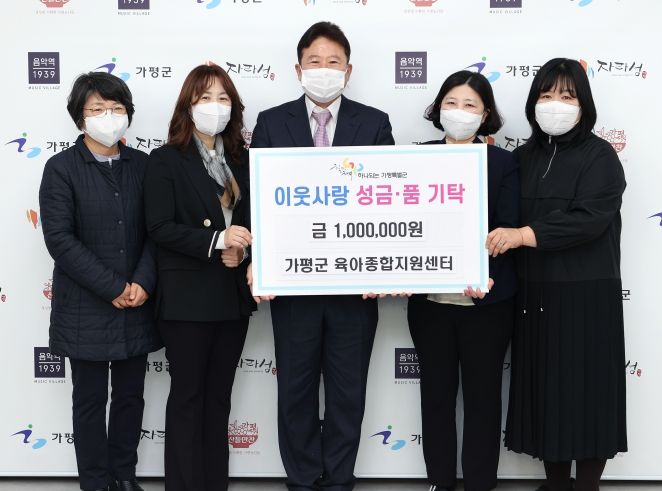 [한국기자연대] 지난 12월 23일, ‘가평군 육아종합지원센터’에서는 우리군 소외 이웃의 따뜻한 겨울나기를 위해 이웃돕기 성금 100만원을 군에 기탁하여 전달식을 가졌다.