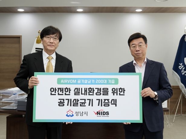 [한국기자연대] 공기청정기 센서 및 살균 바이오 부품 전문 기업 ㈜엔아이디에스에서 연말연시를 맞이하여 성남시에 공기살균정화기 200대(1억 상당)를 기부했다.