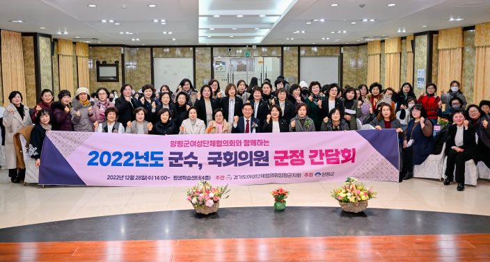 [한국기자연대] 양평군 여성단체협의회는 지난 28일, 평생학습센터 4층 다목적홀에서 전진선 양평군수를 초청하여 2022년 여성단체협의회 군정간담회를 실시했다.