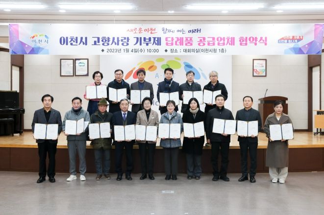 이자리에서 이천시와 공급업체 15개의 대표자 간의 고향사랑 기부제 답례품의 협약서 작성이 진행됐다. 주요 협약 사항은 △ 계약의 목적 △ 답례품 공급 및 대금 정산 △품질 보증 및 제조 책임 등 답례품의 안정적인 공급과 원활환 운영에 관한 내용이다.