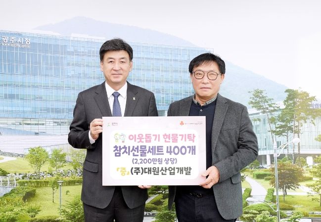 ㈜대원산업개발 이근배 대표는 지난 11일 광주시청을 방문, 어려운 이웃들을 위해 사용해 달라며 참치선물세트 400개(2천200만원 상당)를 전달했다.