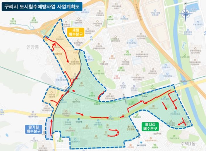 백경현 구리시장은 “금년 내에 실시설계를 완료하고 환경부와의 재원협의를 실시해 2024년 사업 준공을 목표로 최대한 신속하게 사업을 추진함으로써, 이미 완료된 수택지구 우수저류시설 설치사업 및 인창빗물펌프장 증설사업과 함께 도심지 침수예방에 큰 기여를 할 것으로 기대한다.”고 전했다.