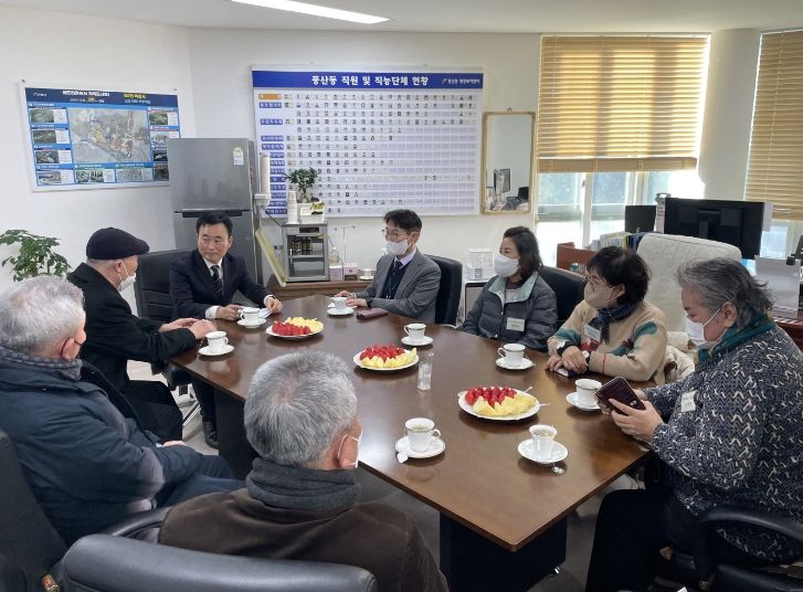 [한국기자연대] 고양특례시 풍산동 행정복지센터는 지난 2월 21일 동장실에서 윤건상 일산동구청장의 주재로 직능단체장 간담회를 개최했다.
