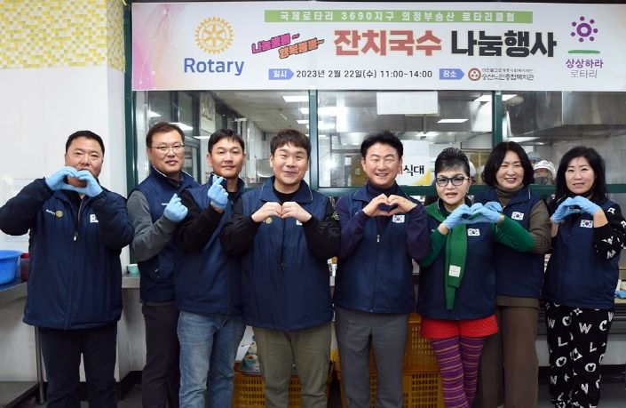 [한국기자연대] 의정부시는 국제로타리 3690지구 의정부 송산로타리클럽에서 2월 22일 송산노인종합복지관을 이용하시는 어르신 400명을 대상으로 잔치국수 나눔 행사를 했다고 밝혔다.