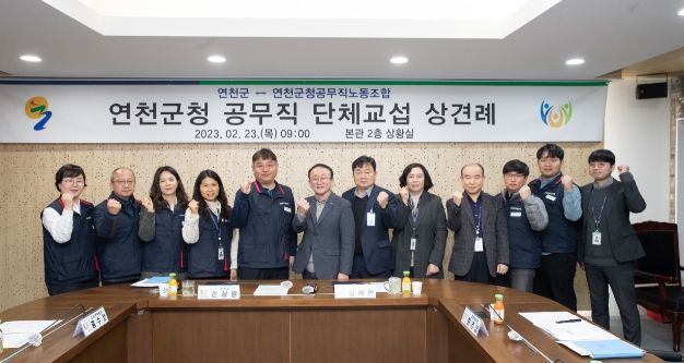 [한국기자연대] 연천군은 23일 본관 2층 상황실에서 공무직노동조합과 단체교섭 상견례를 개최했다.