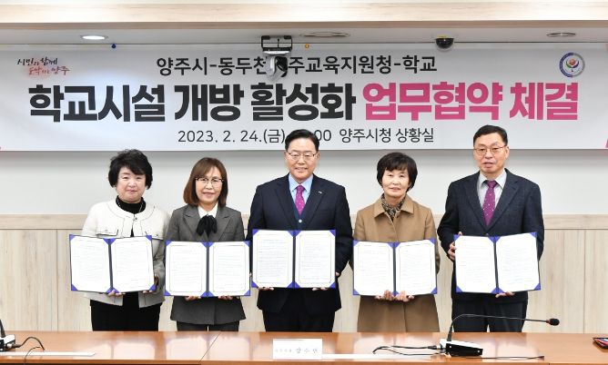 [한국기자연대] 양주시는 지난 24일 동두천양주교육지원청, 한국외식과학고등학교, 조양중학교, 회천중학교와 학교시설 개방 활성화를 위한 업무협약을 체결했다.