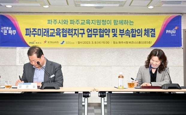 [한국기자연대] 파주시는 8일 파주교육지원청과 미래교육협력지구 업무협약 및 2023년 부속합의를 체결했다고 밝혔다.