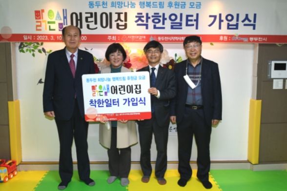 [한국기자연대] 동두천시는 지역사회 나눔문화 확산을 위해 경기북부사랑의열매와 협업으로 추진하는 ‘희망나눔 행복드림’ 착한일터 116호로 맑은샘어린이집을 선정하고 지난 10일 가입식을 진행했다고 밝혔다.