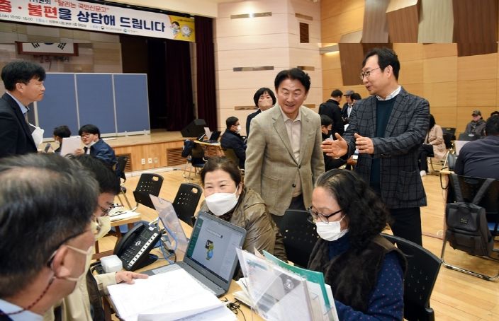 [한국기자연대] 김동근 의정부시장은 3월 15일 의정부시청 대강당에 마련된 ‘달리는 국민신문고’ 상담장을 찾아 민원인과 조사관을 격려했다.