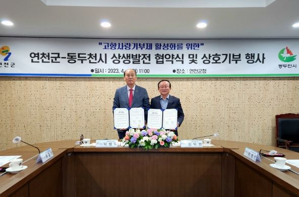 [한국기자연대] 동두천시는 지난 4일 연천군과 고향사랑기부제 활성화를 위한 상생 협약식 및 상호기부 행사를 가졌다.