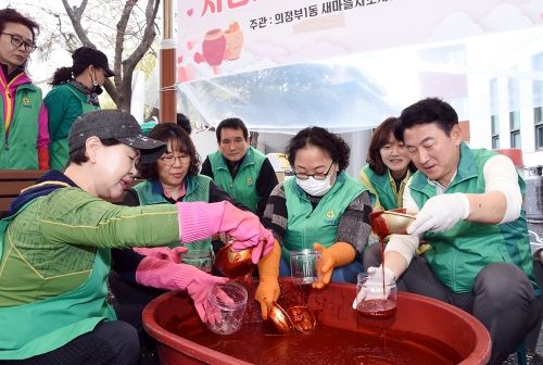 이날 행사는 김동근 의정부시장, 최정희 의정부시의회 의장, 의정부1동 새마을회 회원 20여 명이 참석한 가운데 실시했다. 관내 저소득 소외계층 150가구에 전달할 맛있는 수제 고추장을 담가 의정부1동 주민센터에 전달했다.